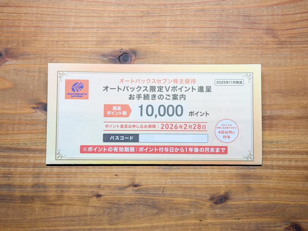 株主優待【Vポイント】オートバックスの株主優待が到着