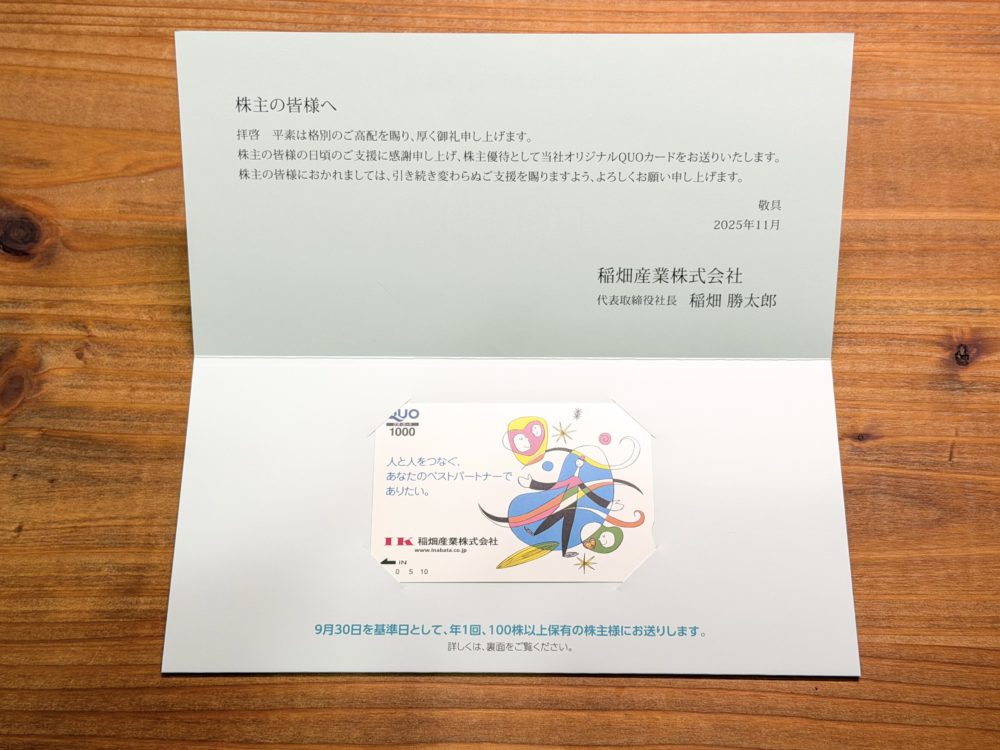 株主優待【QUOカード】稲畑産業から株主優待が到着